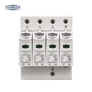 4-Pole Surge Protection Device (SPD) – Designed to protect three-phase AC systems plus neutral from voltage surges and transient over voltages.