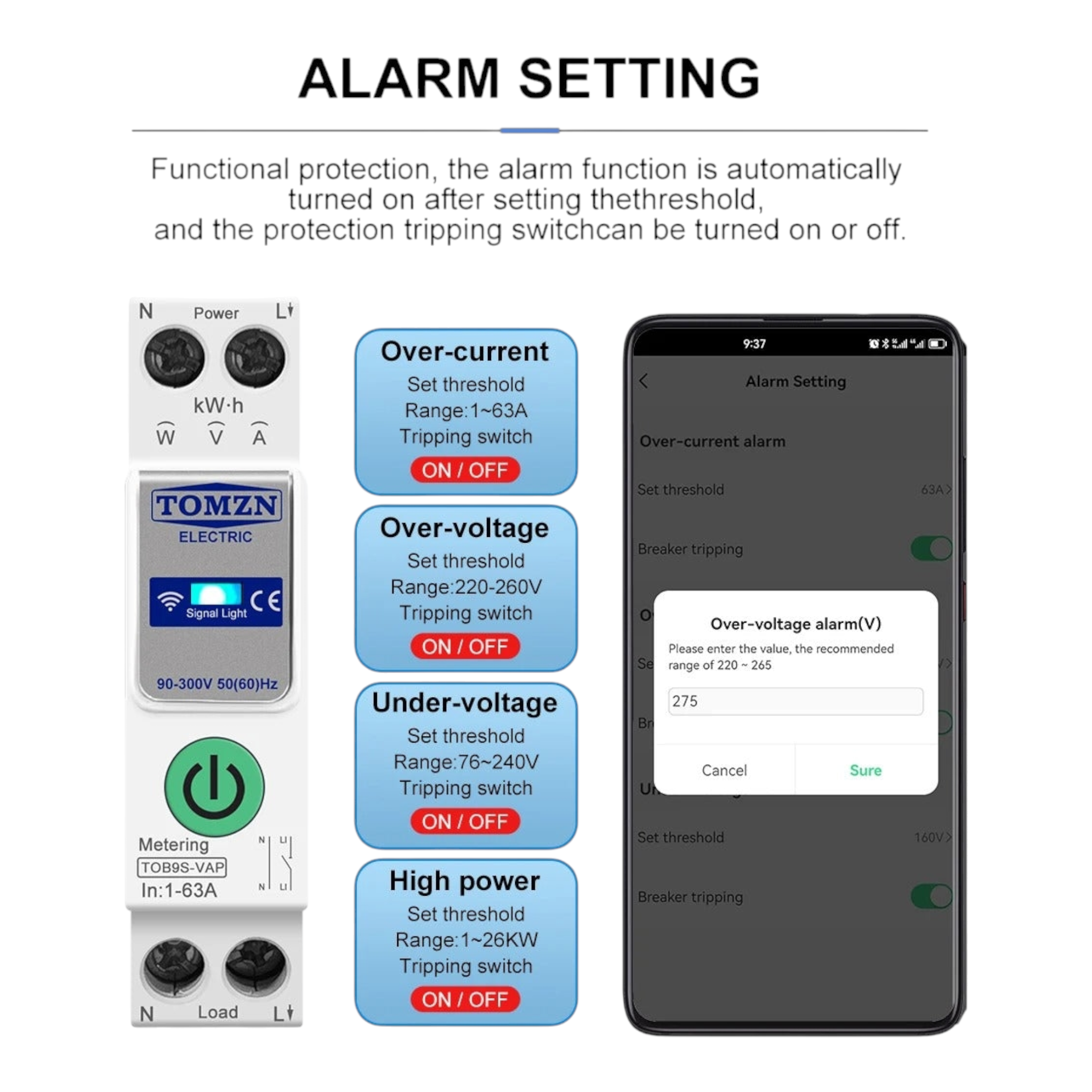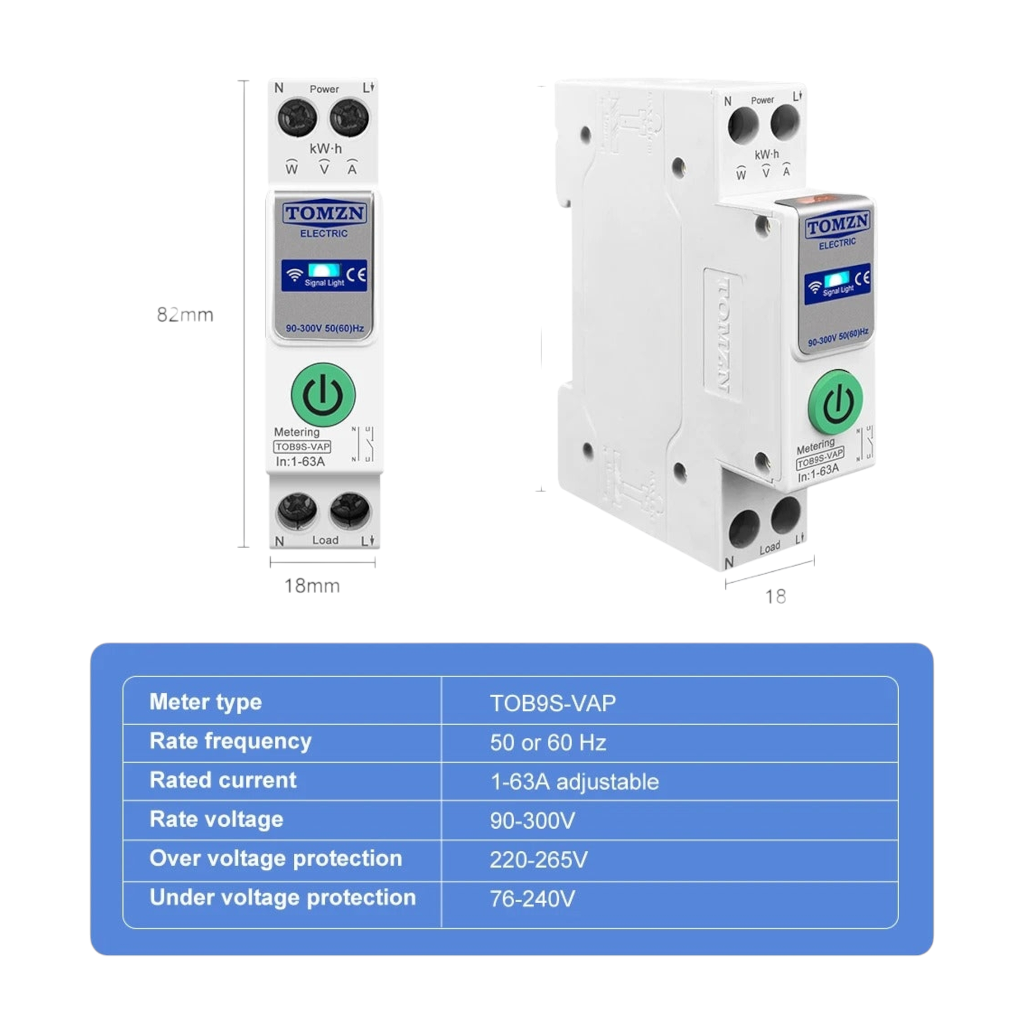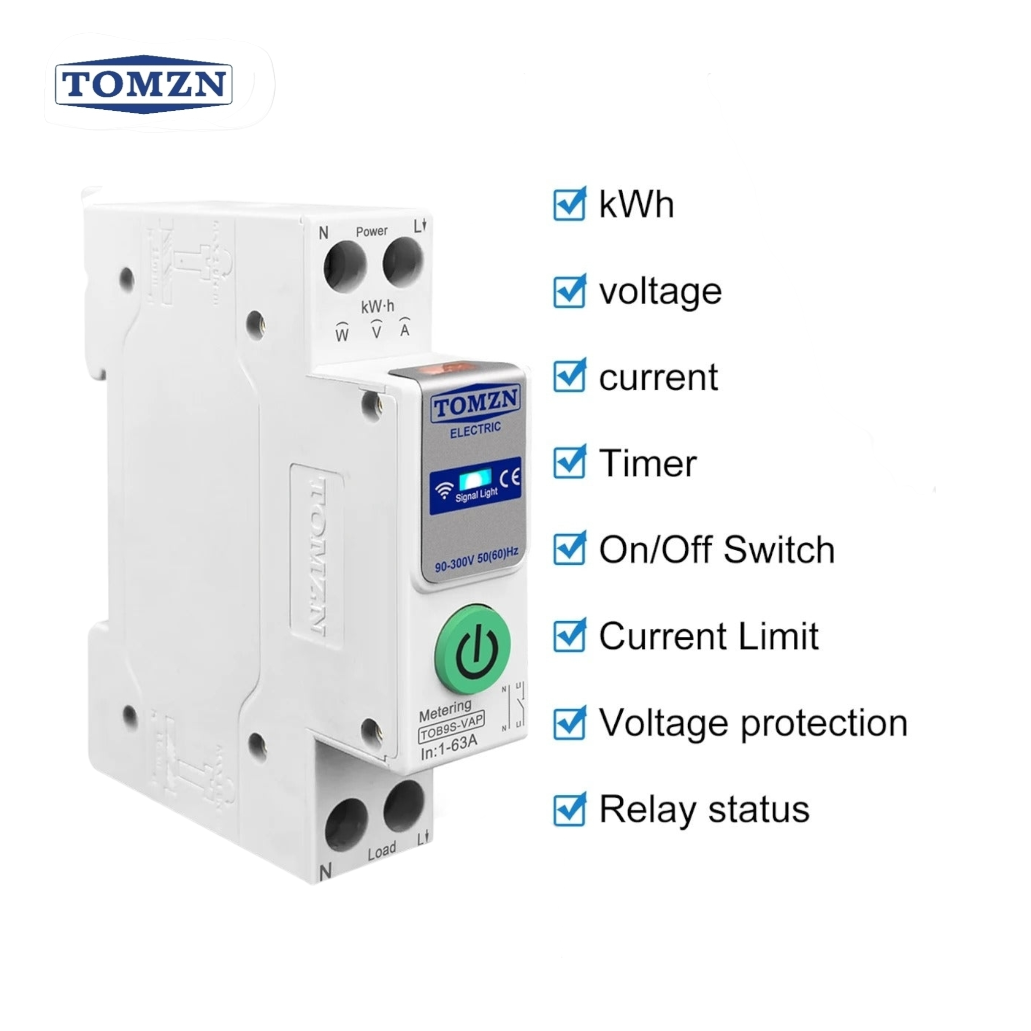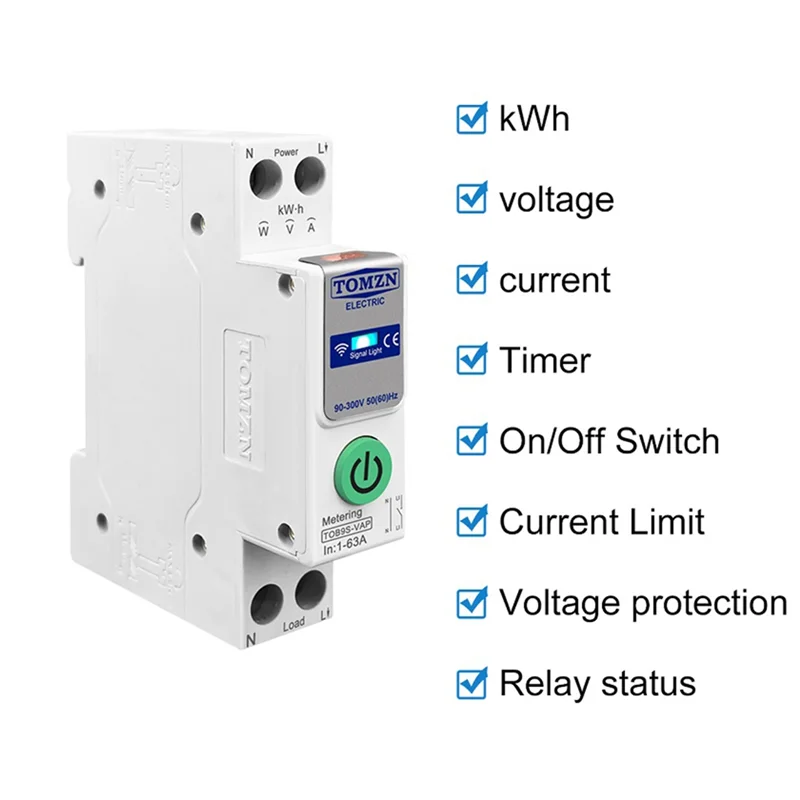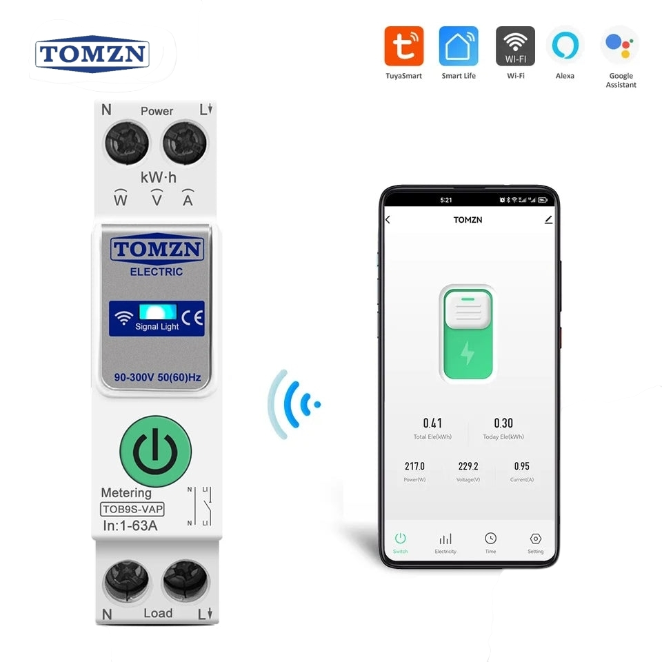 TOMZN WIFI Smart Switch Energy Meter Kwh Metering Monitoring Circuit Breaker-TOB9S-VAP